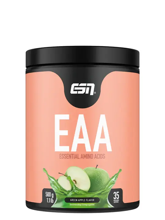 ESN EAA Pulver enthält alle acht essentiellen Aminosäuren, die der Körper nicht selbst herstellen kann. Sie sind während harter Trainingseinheiten besonders wertvoll, da sie schnell aufgenommen werden und umgehend zur Verfügung stehen.
